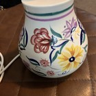 Vintage Hand Painted Floral Glass Table Lamp, Gold Accents, White Pink Green