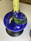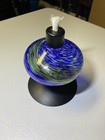 Hand Blown Art Glass Blue And Green Swirled Design Black Accents Oil Lamp
