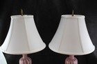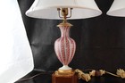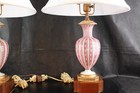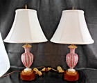 Restored Pair Mid-Century Murano AVEM Pink Zanfirico & Latticino Garza Lamps