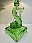 ✨ RARE Heisey Moongleam #110 Sandwich Dolphin Candlestick Lamp -- Etched Floral Pattern (BASE Only - Shade not included) 🌟 I purchased this directly from the Heisey Glass Museum and newly converted this candlestick into a lamp which means it has a brand new socket, wires, cord, harp and finial. The harp and finial are in an "antique brass" finish. Due to the candlestick base, this only allows for a top cord outlet in the socket itself that drapes down in the back. 20" tall (base to finial) x 4.25" square base