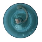 The family glassblowing studio is flourishing in the small coastal beach community of Leucadia, which runs along the southern California coast of Encinitas. The lamp is crafted by Buzz Blodgett and features a beautiful aqua color with a glossy finish.