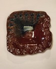 Studio Pottery Bowl Set of 2 Signed PF Red Blue Drip Glaze Trinket Dish Handmade
