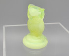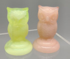 2 Boyd Art Glass Owls Yellow/Uranium and Rose Figurines