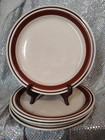 Set of 4 - Contemporary Chateau Stoneware Brown Rim 10 1/2" Dinner Plates Japan