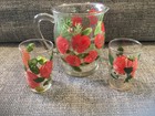 4 VTG Anchor Hocking Glass D Handle Coffee Mugs Red Green Yellow Stackable USA. Condition is Used. Shipped with USPS Ground Advantage.