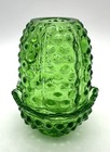 Vintage Fenton Hobnail Fairy Lamp – Green Glass Candle Holder - Read Description