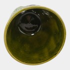 Boldly sculptural and richly detailed, this Art Deco jardiniere features a flared form with satyr face and scrolling motifs, finished in blended green and brown majolica glazes that accentuate its dramatic relief.