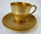 Rare Antique Hutschenreuther Selb Bavaria Gold Encrusted Demitasse Cup & Saucer