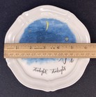 The white plates have a scalloped rim and are decorated with a blue night sky with a crescent moon and stars and script letters S and "Starlight, starbright.".