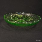 Anchor Hocking Mayfair Open Rose Low 2 5/8"Bowl Green Depression Glass 1931-1937. This is a lovely pattern that consists of a double "Open Rose" contained in 4 panels. The rim of the bowl is beautifully scalloped and this is a substantial glass piece weighing 54 ounces.
