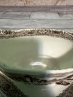 Antique Jefferson Green Glass Bowl Swirls & Opalescent Ruffled Rim 8.5”