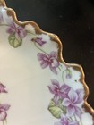 Antique Limoges porcelain plate featuring hand-painted purple violets and a scalloped gold edge. Specifically, it is consistent with pieces from Elite Works (Bawo & Dotter), a well-known manufacturer from the Limoges region of France. Product Details Manufacturer: Elite Works (Limoges, France), often marked on the back with a green "Elite" stamp. Pattern: Often identified as a "Violet" design, featuring delicate purple flowers around the rim and frequently a small cluster in the center. Features: White porcelain base. Heavily scalloped or "leaf-like" edges with gold trim. Hand-painted floral motifs. * no chips or cracks gold is a little worn.