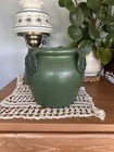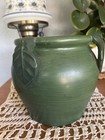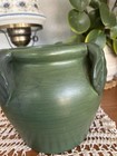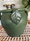 Vintage Green Pottery Planter With Leaf Handles Mid Century Modern 1950s Style