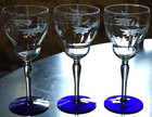 Vtg Set 3 Weston OPTIC CRYSTAL Cut Flower Water Goblets WGL19 COBALT BLUE FOOT