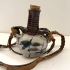 VTG Studio Pottery Flask Jug Bottle Stoneware Braided Leather Strap SIGNED