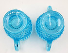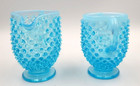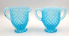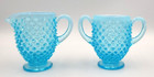 Vintage Fenton Art Glass Blue Opalescent Hobnail Creamer And Open Sugar Bowl Set