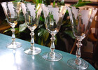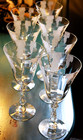 Vtg Set 7 HUNTINGTON OPTIC CRYSTAL Water Goblets FROSTED DRAPED LEAVES c1931