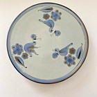 KEN EDWARDS POTTERY EL PALOMAR CAKE STAND 13" LARGE BIRD & BUTTERFLIES BLUE EUC