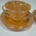 VINTAGE MCM FIRE KING ANCHOR HOCKING PEACH LUSTRE LAUREL LEAF 2 cups and saucers
