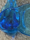This vintage Bluebird of Happiness figurine by Leo Ward features a double bird design on a heart, signed by the artist in 1992. Made in the United States with fused glass artistry, this glossy blue figurine is 4.25 inches long and 3 inches tall, with a width of 4 inches. The heart-shaped pattern and theme of happiness make it a unique and charming piece of decorative pottery and glassware from the late 20th century.