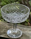 Vintage Mid-century Cut Glass Crystal Pedestal Stem Compote Candy Dish (5-7/8")