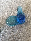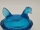 Vtg LE Smith Mini Hen on Nest Salt Cellar Capri Blue Glass Chicken 2.5"