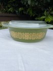Vtg Promotional Pyrex 043 Casserole Dish w/Lid Bramble Green Gold 1966 | 1.5 Qt.