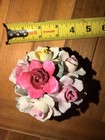 Features a hand-assembled bouquet of roses in soft pink, red, and yellow tones set in a classic low white bowl. - Marked “Capodimonte Italy” on base. capodimonte roses italy. - Decorative centerpiece size (approx. ).
