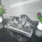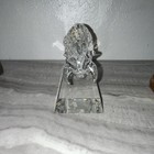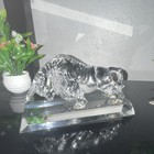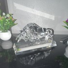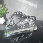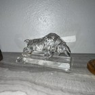 Clear Glass Bull Figurine Sculpture on Rectangular Base Decorative Animal