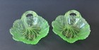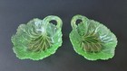 Indiana Glass 1930’s Green Uranium Glass Pebble Leaf Candy Dish Set Of 2 Vintage