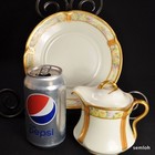 In 1984, Wedgwood closed the Franciscan Ceramics division. There is no paint wear or crazing. The handle and rim of the foot are painted in solid gold paint. The height to the top of the handle is 4".