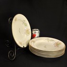Thomas Bavaria Set of 7 Smooth Rimmed Soup Bowls Pastel Poppy w/Gold 1946-1949