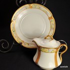J&C Jaeger & Co Covered Syrup w/Underplate Handpainted Yellow Roses w/Gold 1912