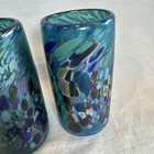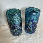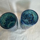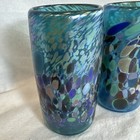 Very nice, hand blown, thick edge drinking glasses with incredible iridescent colors. About 6” tall. One of a kind originals.