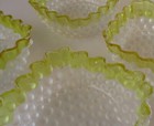 Hobbs Brockunier Hobnail glass berry / finger bowls set of 4 gold ruffle antique