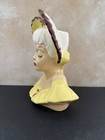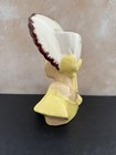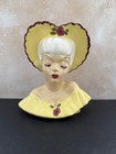 VINTAGE LADY HEAD VASE UM STAND ALONE WALL POCKET SOUTHERN BELLE IN YELLOW 7.5”