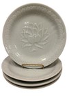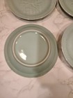 Set of 4 Celadon Green Dinner Plates Floral Lotus Center Embossed 10" W x 1.75" H | Excellent Used Condition | No chips or cracks *Flaw, light signs of use Several of the plates have manufacturer anomals (tiny dark dots in the glaze) | Please refer to the photos for the condition. Weight before packaging 8 lbs. *Stand NOT included