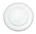 Set of 4 Clear Glass Dinner Plates with Silver Beaded Edge 10.25"