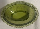 Green Glass Hen on Nest Oval Covered Bowl Farm Animal Theme