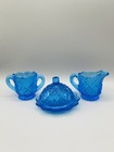Antique Westmoreland Blue Glass Thumbelina Child Set Creamer Sugar Butter Dish