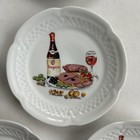 The France Philippe Deshoulieres porcelain appetizer set of 7 plates is a contemporary and decorative piece perfect for all occasions. Made in Limoges, France around 1994, these round plates feature a French Bistro pattern in multicolor with a glossy finish.