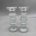 Pair Of IITTALA FESTIVO 3-RING Candle Stick Holder Timo Sarpaneva MCM, Glacier