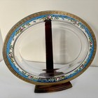 Antique Bohemian Cobalt Glass Oval Tray Gilt Enamel Floral Czech