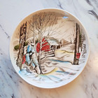 The Spirit Of The Flag Brandon House Warren Kimble 8” Plates Set of 5 is a decorative cookware set featuring a patriotic flag pattern on round ceramic plates. Manufactured in 1998 by Sakura, these multicolor plates are styled in a Colonial design with a glossy finish. Perfect for all occasions, these original plates are a colorful addition to any dining table, showcasing the beauty of American craftsmanship in the late 20th century. Very nice set of 5 plates in good condition no chips or cracks