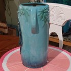 Roseville pottery teal vase with panther Approximately 19 1/2" tall. In very good Vintage condition...does have somecrazing, see pictures for greater detail. Beautiful piece.