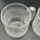 The round, clear glass mug features a textured pattern and a glossy finish, perfect for all occasions. The mug also includes a handle for easy use, making it a stylish and practical addition to any collection.