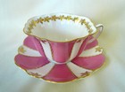 Shelley England Teacup # 0559 Pink White STRIPE PANELS GOLD LEAVES tea cup