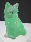 Fenton Sitting Cat Willow Green Satin Glass Hand Painted Floral Signed