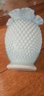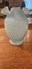 VTG 1940's Fenton Turquoise Hobnail 8" Double Crimped Round Vase Opalescence