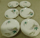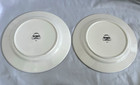 This lot includes one each of a 10 1/2" dinner plate, 8" salad plate, 6" bread/dessert plate and a cup and saucer. The surfaces are shiny with no virtually no visible signs of use.